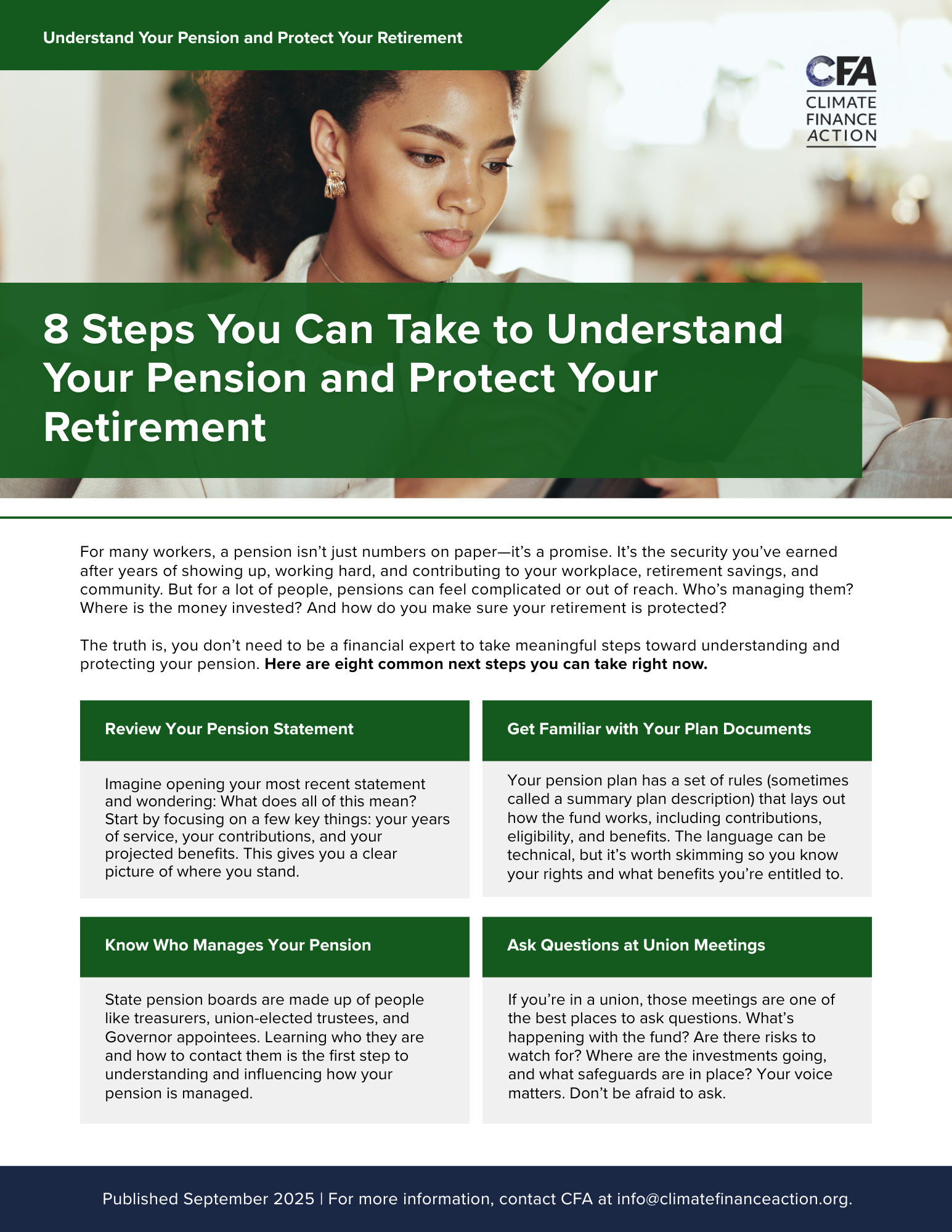Pension Fund year-end reviews can often be difficult to navigate but they are also a ripe moment to boost your fund’s resilience by managing systemic climate risk and recognizing economic opportunities in climate solutions. This guide offers three overarching topics your fund will likely review and actions you can take.
